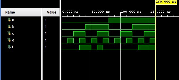 ✅ Timing Diagram Verification: The output f matched the expected truth table values for all 16 input combinations, confirming the correctness of our design.