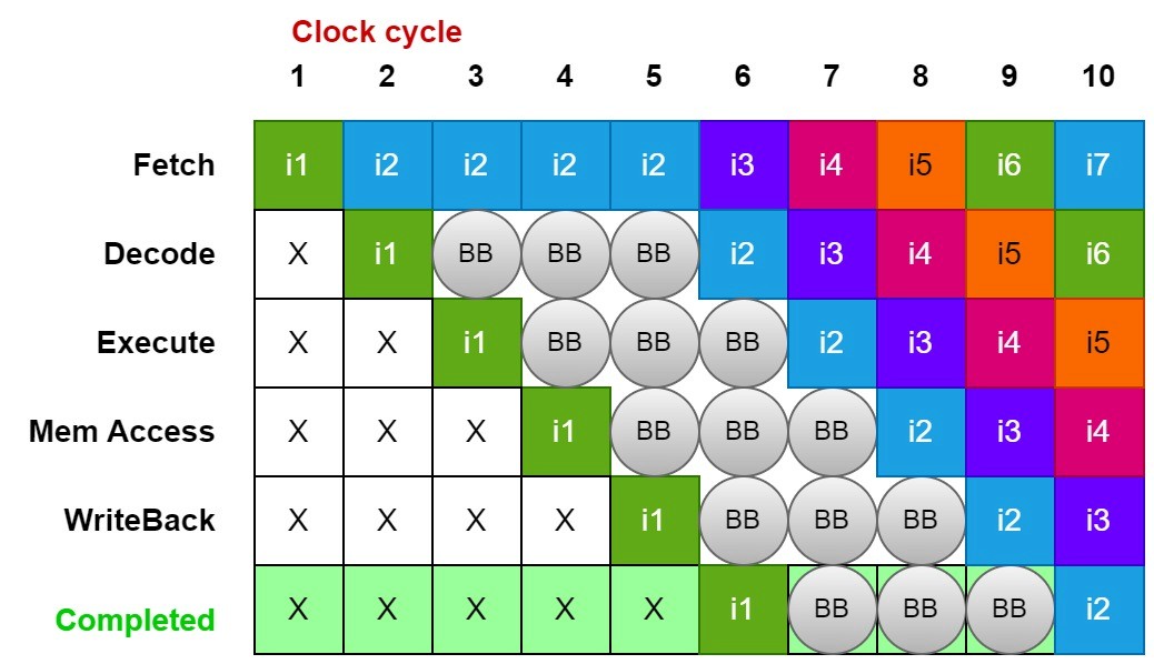 Causes a pipeline stall, reducing performance.